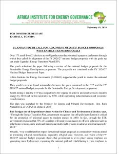 Support women and youth to engage in advocacy to align the 2026/2027 national budget proposals with Uganda’s Energy Transition Plan